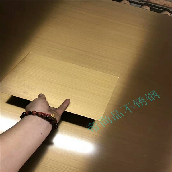 不銹鋼鍍銅板采用德國先進水鍍技術,使不銹鋼表面鍍上一定厚度的真紫銅,黃銅。達到能做舊拉絲仿古高端裝飾,解決了以往銅鋼復合板材料由高分子膜復合易分離、起泡的缺點。    (2)不銹鋼鍍銅板材具有可以點焊、滿焊的特性,剪折無脫離。適應性更強,適用范圍更廣,解決了以往復合板材焊接時容易出現的起泡剝離等問題。    (3)不銹鋼鍍銅板可以滿足異型加工需求,可以應用于銅工藝產品加工及特殊環境使用。